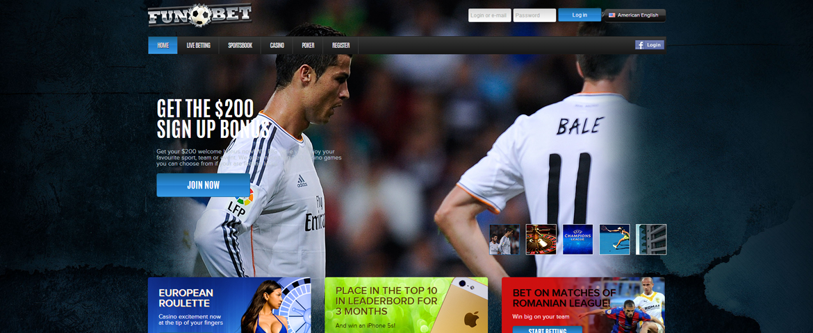 Designed for the Romanian sports betting market where soccer betting is in high demand, Funbet provides multiple gambling opportunities easily accessible due to its user friendly interface. The bookmaker offers very competitive odds on all major sporting events throughout the year and some of biggest bonuses including a very generous welcome bonus. In addition to sports betting, Funbet features a large variety of casino games with beautiful graphics and sound effects and multiple poker rooms with various cash games and poker tournaments. Incorporating 7 language versions, the website accepts credits, three major currencies: EUR, USD and RON as well as bitcoin currency.