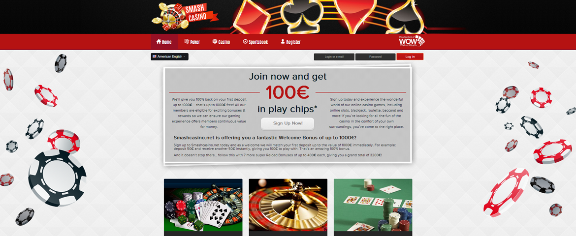 By offering a multi-level marketing system, Smashcasino allows customers to generate profits just by promoting smash casino website paying up to 40% of the profits generated by referred customers. All new users can take advantage of a fantastic 100% Welcome bonus on their first deposit, up to 1000 EURO. Smashcasino offers several gambling products including: sports betting including live betting action, more than 100 of the web’s best and loved casino games, and various poker rooms. In addition, the website is available on all mobile devices with easy access from anywhere in the world.